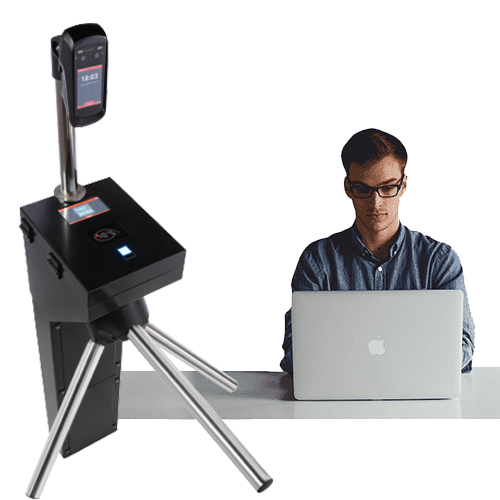 O kit inclui: Catraca com reconhecimento facial + Software de controle de acesso para portaria + suporte.